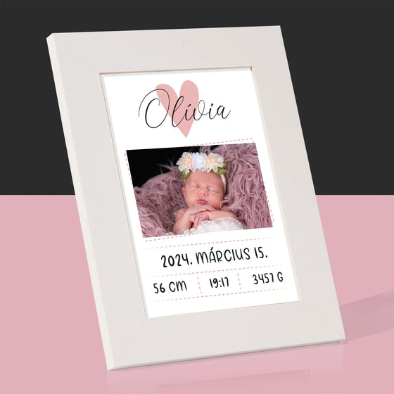 18.000 Ftegységár /Nem elérhetőSzületési Emléklap: Adatok, Szívecske, Lány - Fotókeret - függőleges