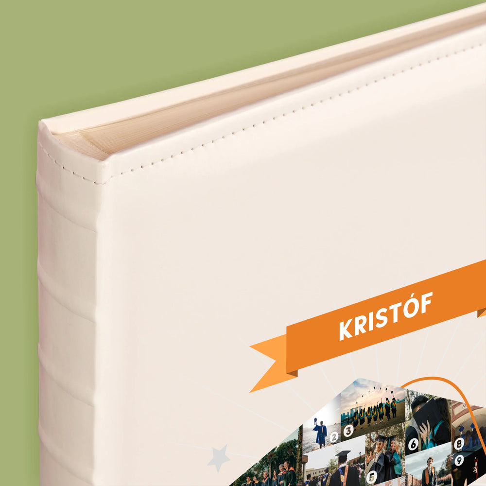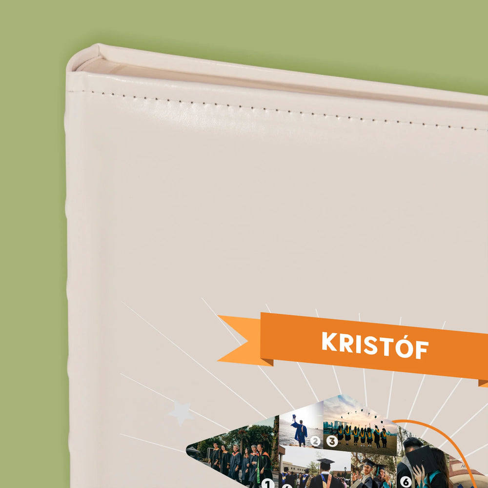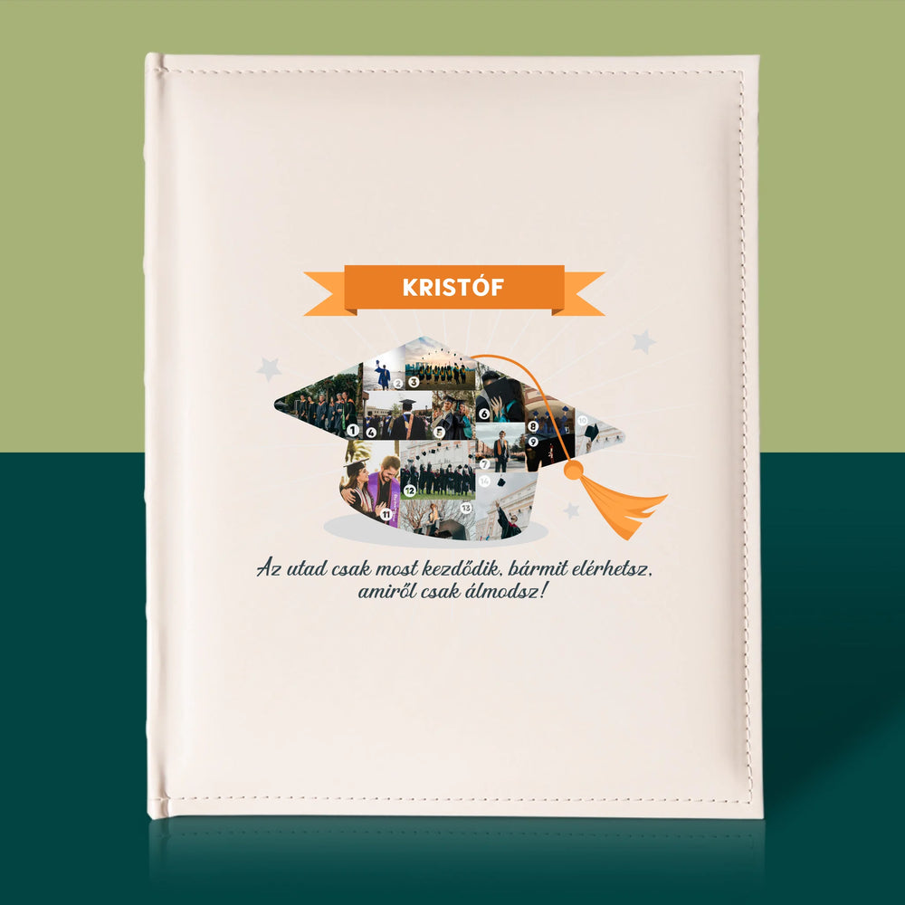 Hagyományos fényképalbum személyre szabott borítóval.