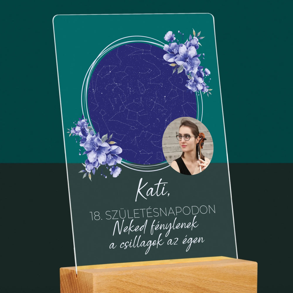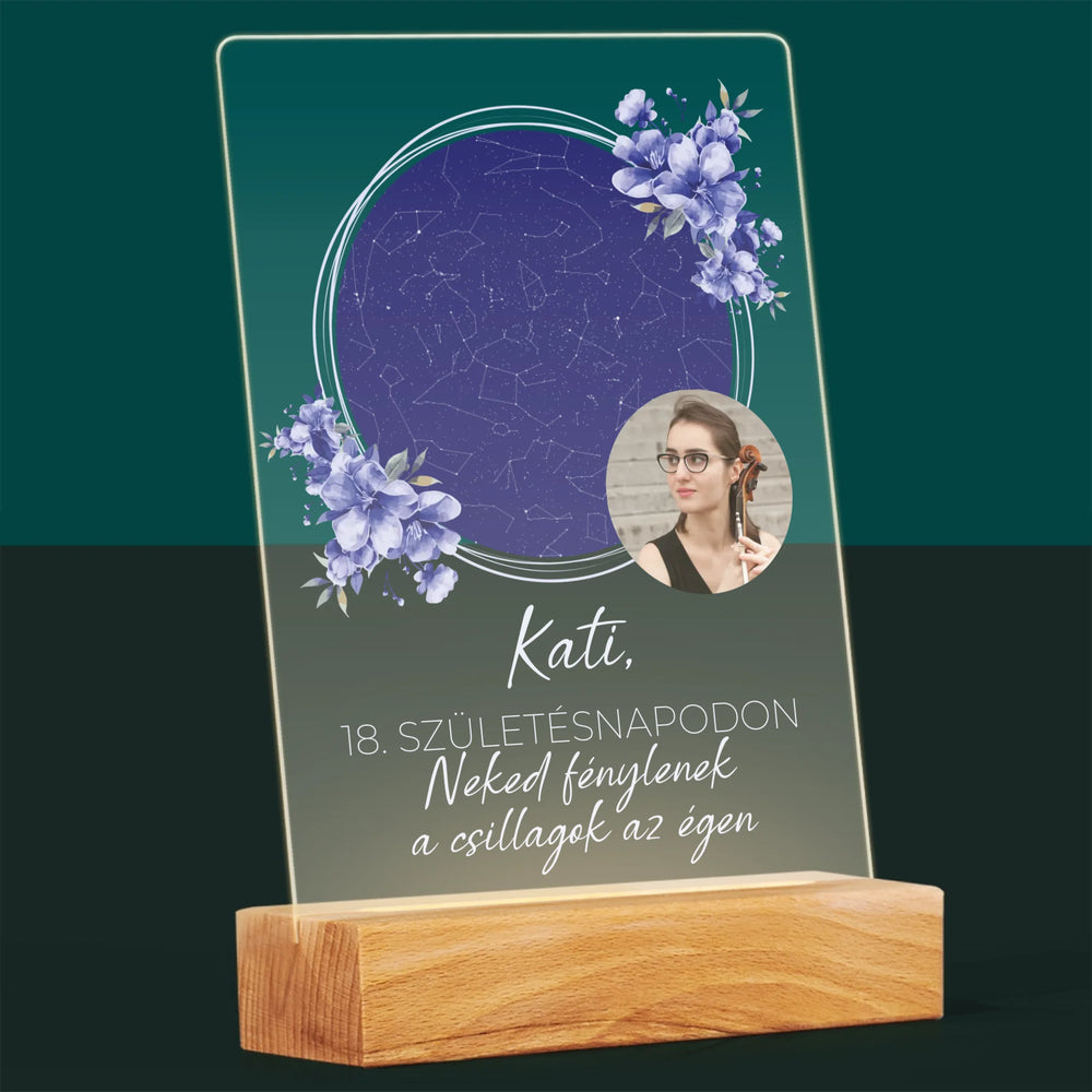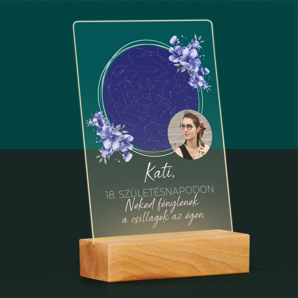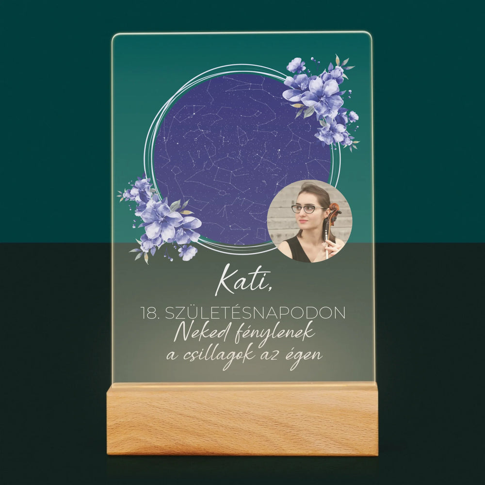 Csillagtérkép: Csillagtérkép: Születésnapi Csillagfény - Akrilüvegre nyomtatott kép leddel