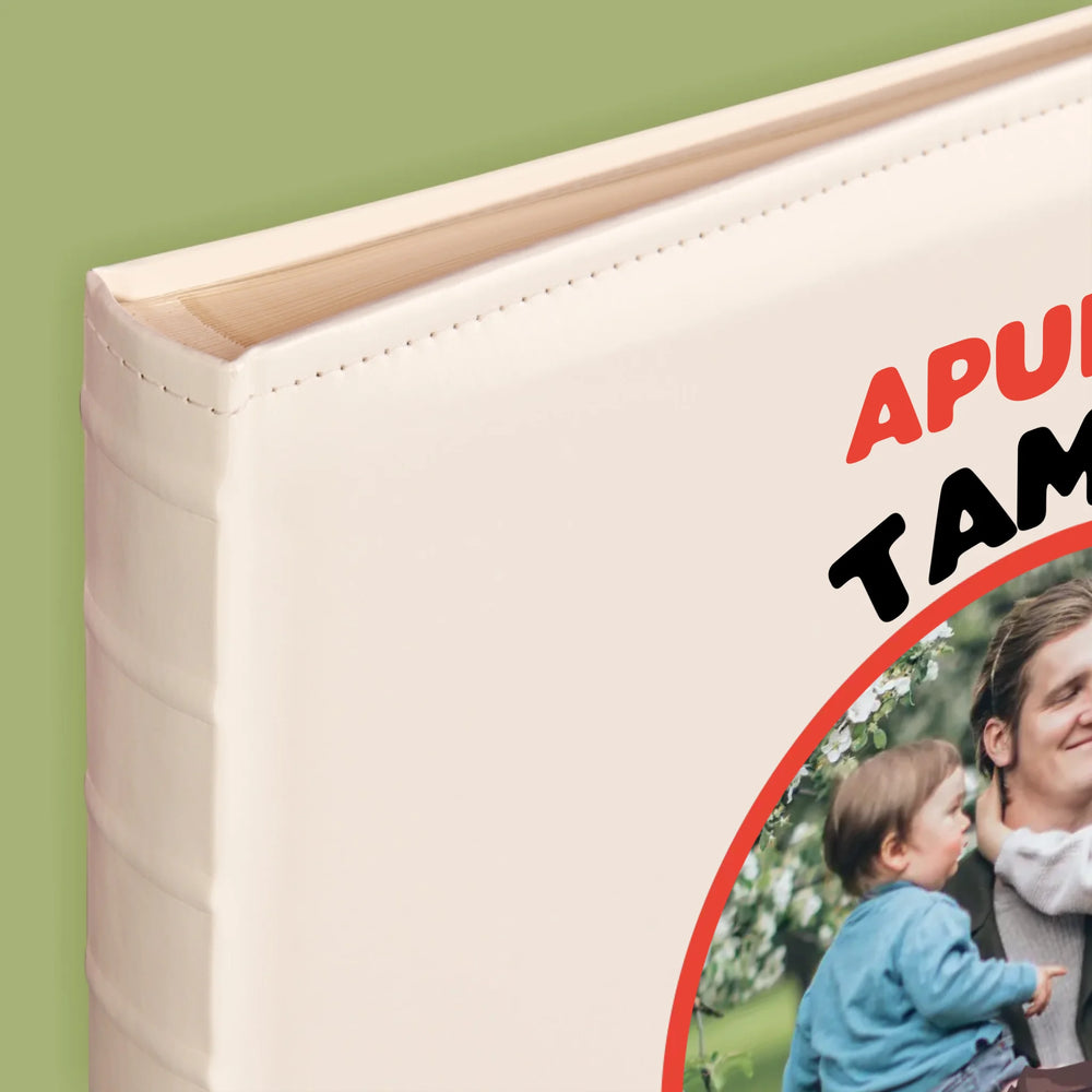 Hagyományos fényképalbum személyre szabott borítóval.