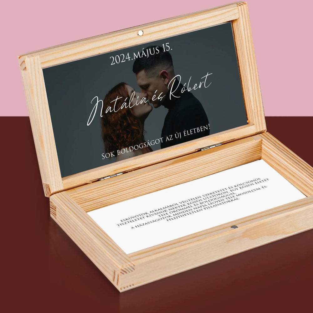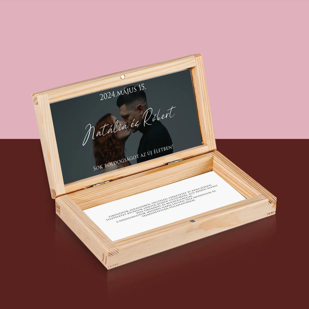 A doboz belsejébe egy személyre szabott felirattal ellátott papírt ragasztunk.