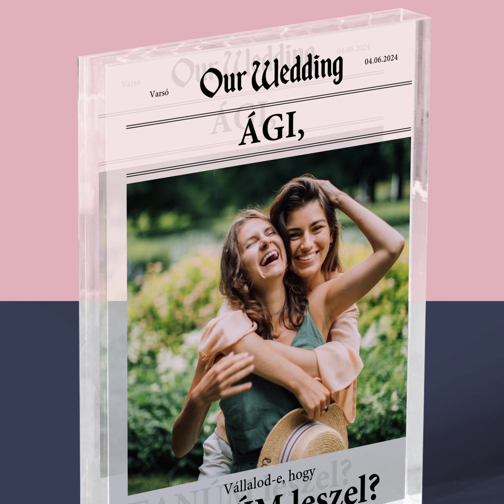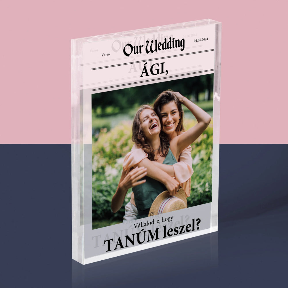 Fotó És Felirat: Our Wedding Tanú - Akrilüveg - Függőleges