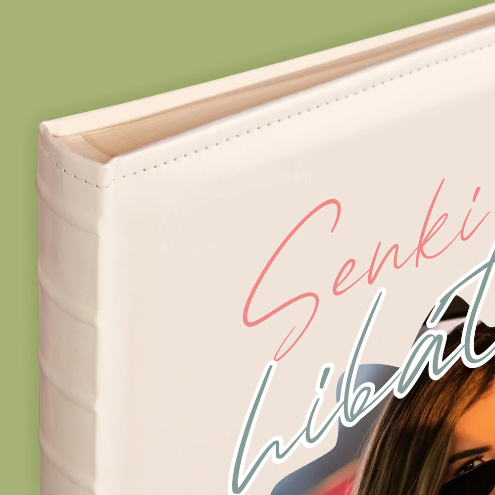 A borító fehér színű, enyhén fénylő a felülete, elegáns műbőrből készült.