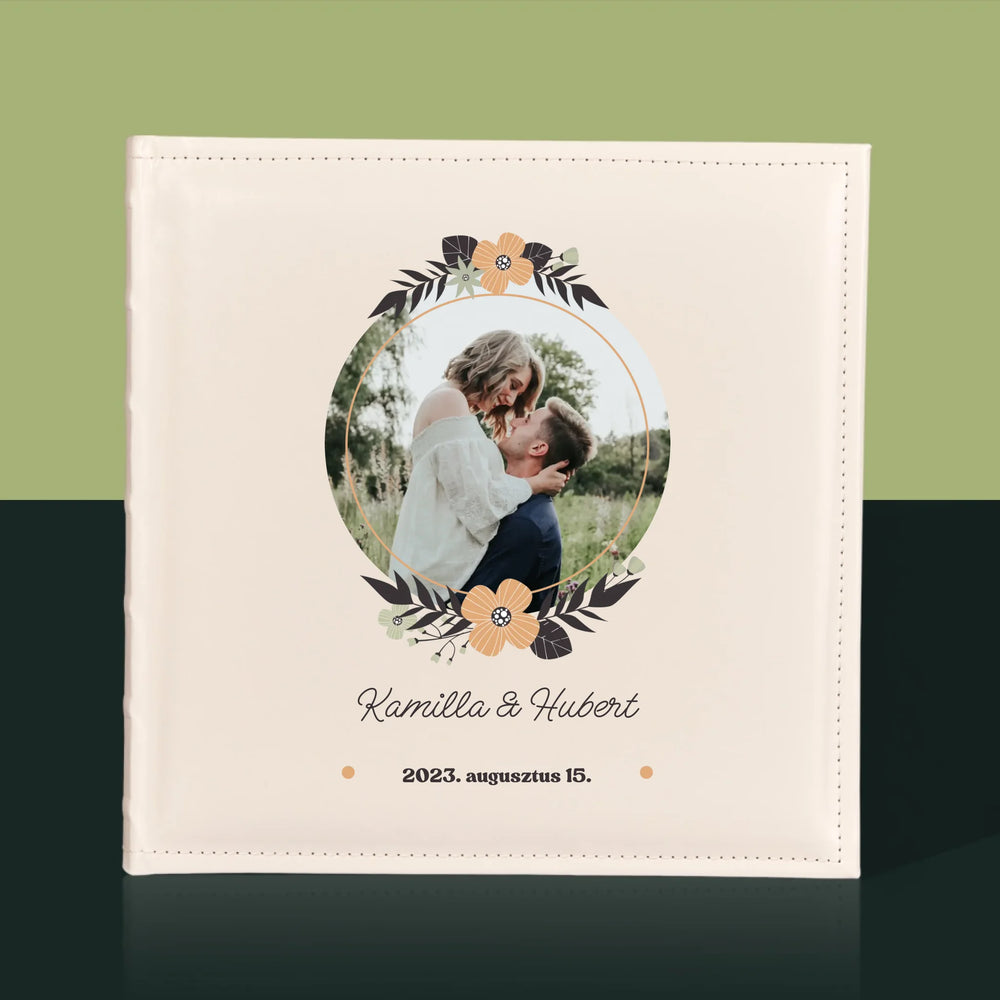 A belső oldalak krémszínűek, pergamenpapírral elválasztva, amely megóvja a fényképeket.
