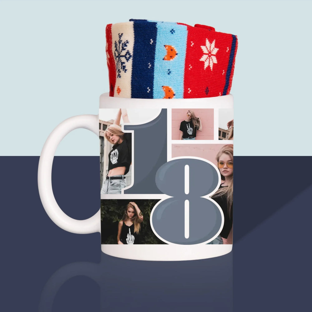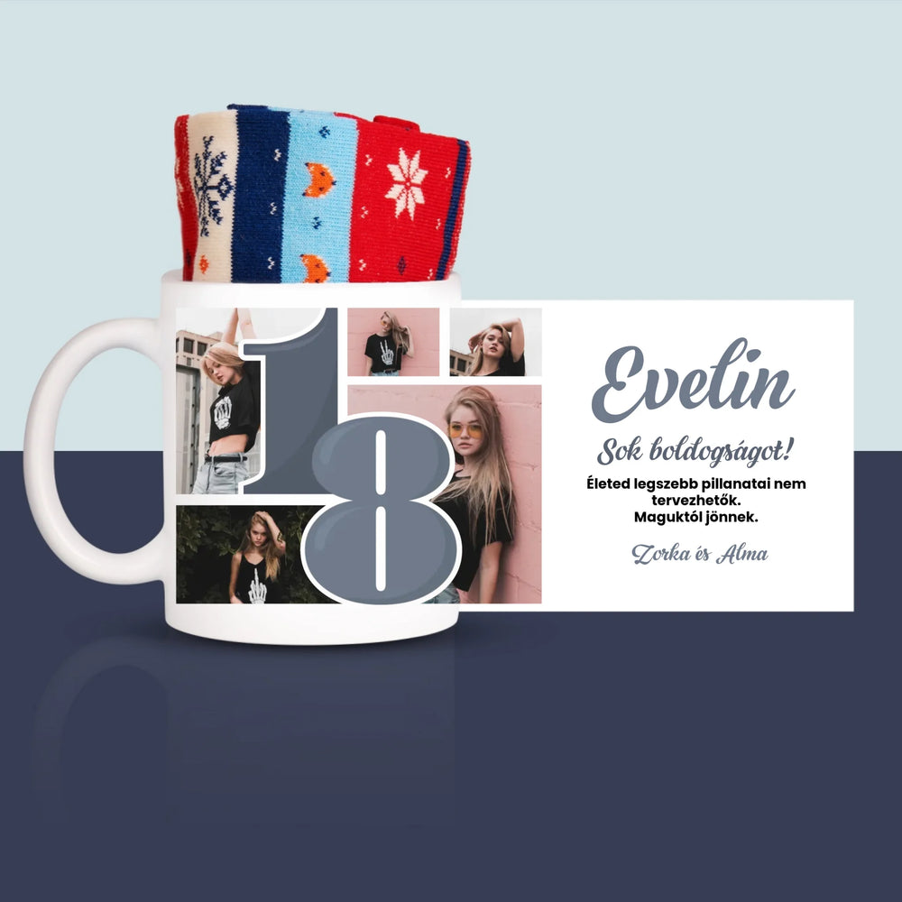 Kiváló minőségű bögrék a választott személyre szabott felirattal és zoknival a belsejében.