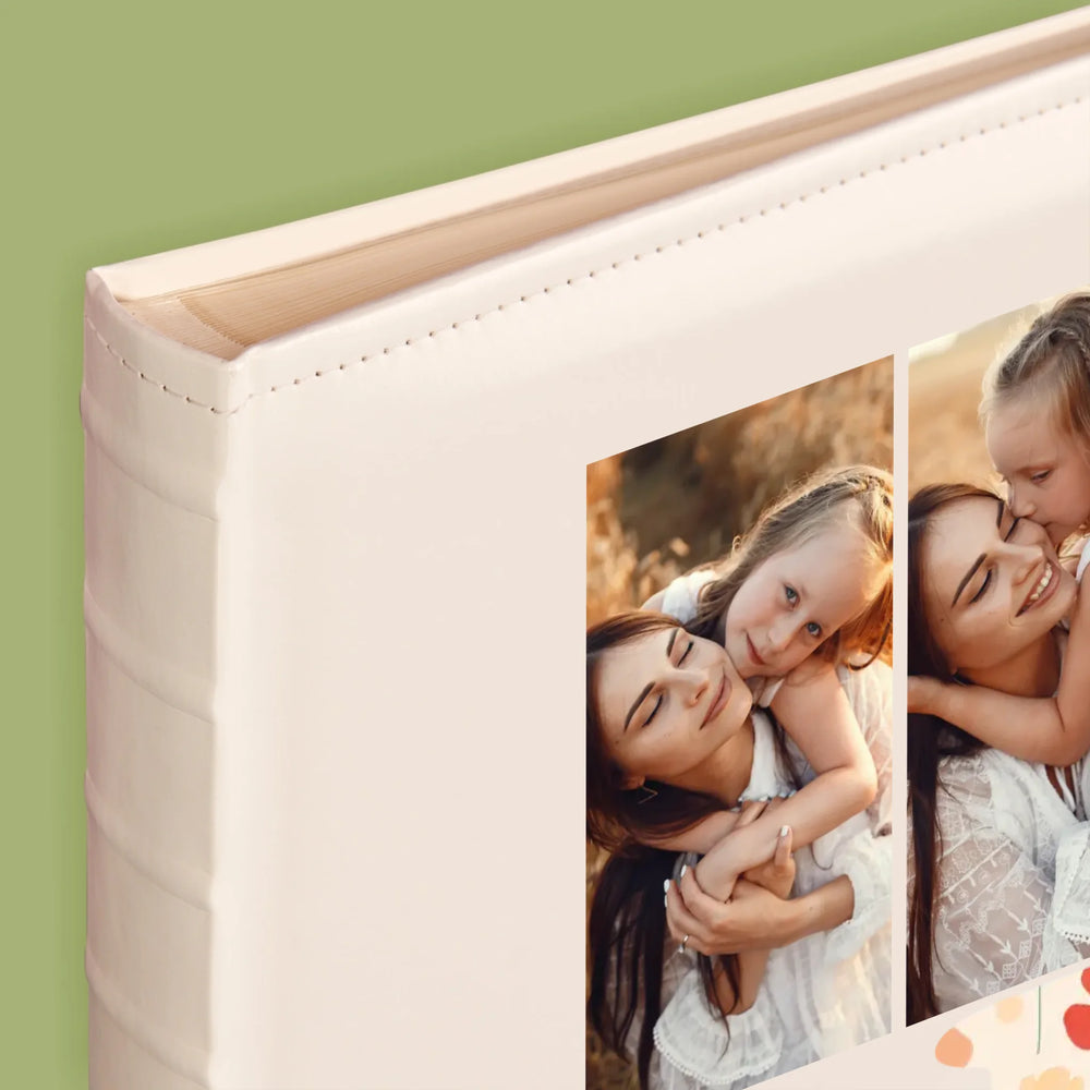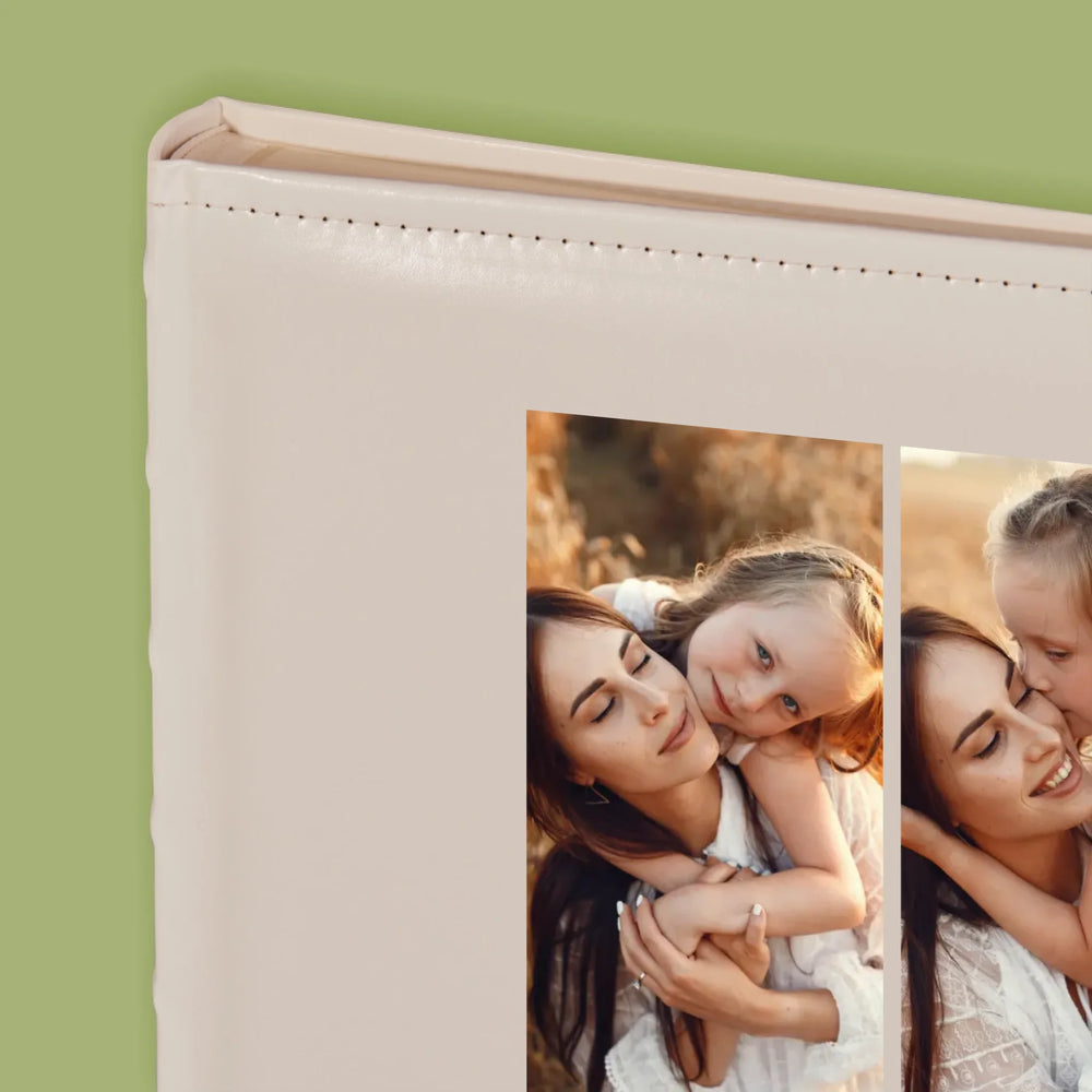 A belső oldalak krémszínűek, pergamenpapírral elválasztva, amely megóvja a fényképeket.