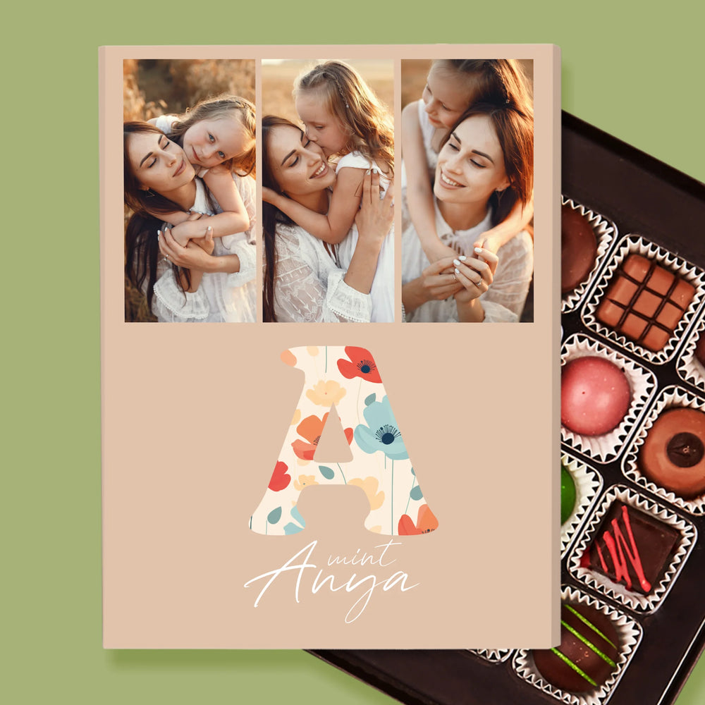 Finom belga csokoládéból készült pralinek elegáns dobozban, az általad választott személyre szabott mintával.