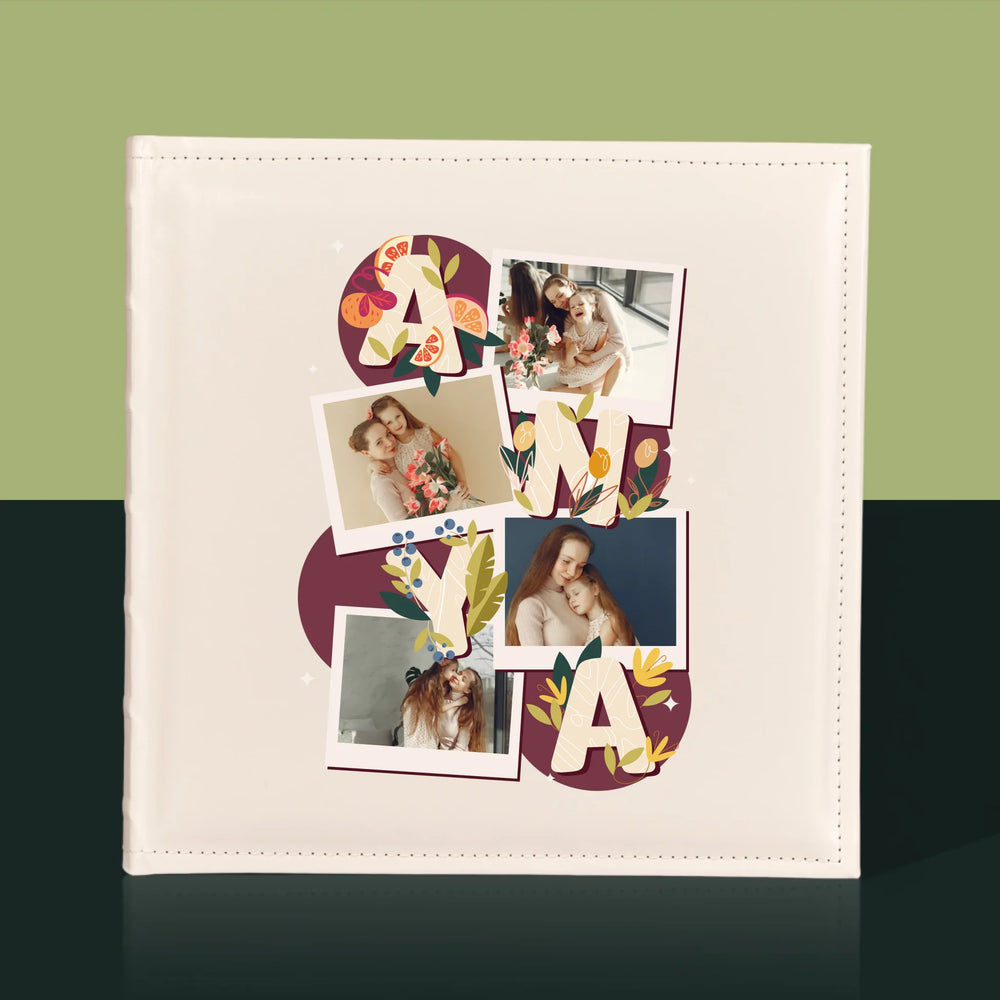 Hagyományos fényképalbum személyre szabott borítóval.