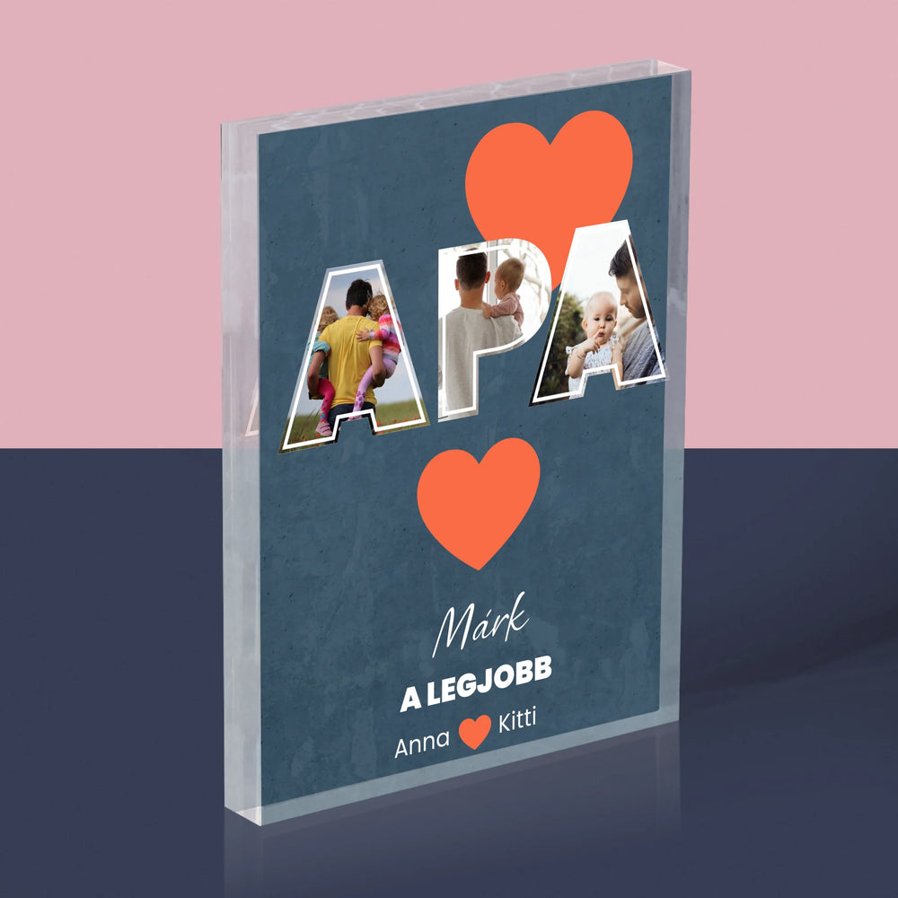 Fotókollázs: Apu A Legjobb - Akrilüveg - Függőleges