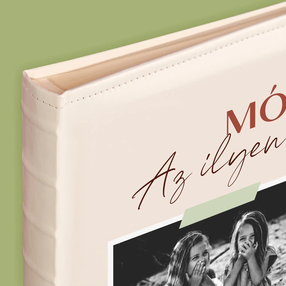 A belső oldalak krémszínűek, pergamenpapírral elválasztva, amely megóvja a fényképeket.