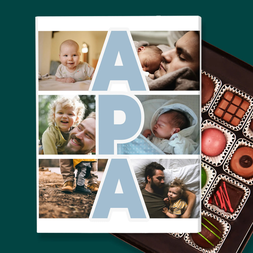 Fotókollázs: Felirat Apa - Praliné