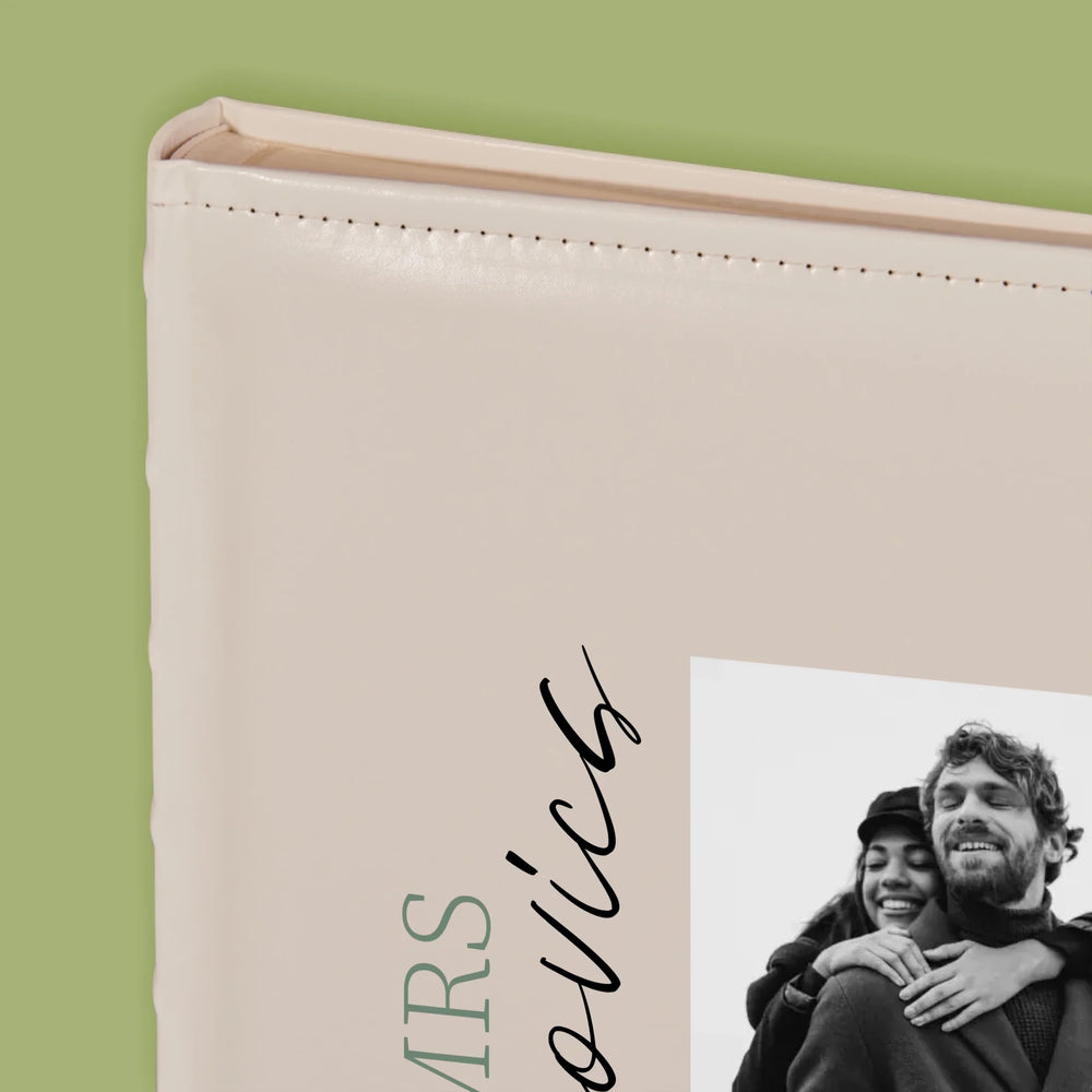 A belső oldalak krémszínűek, pergamenpapírral elválasztva, amely megóvja a fényképeket.