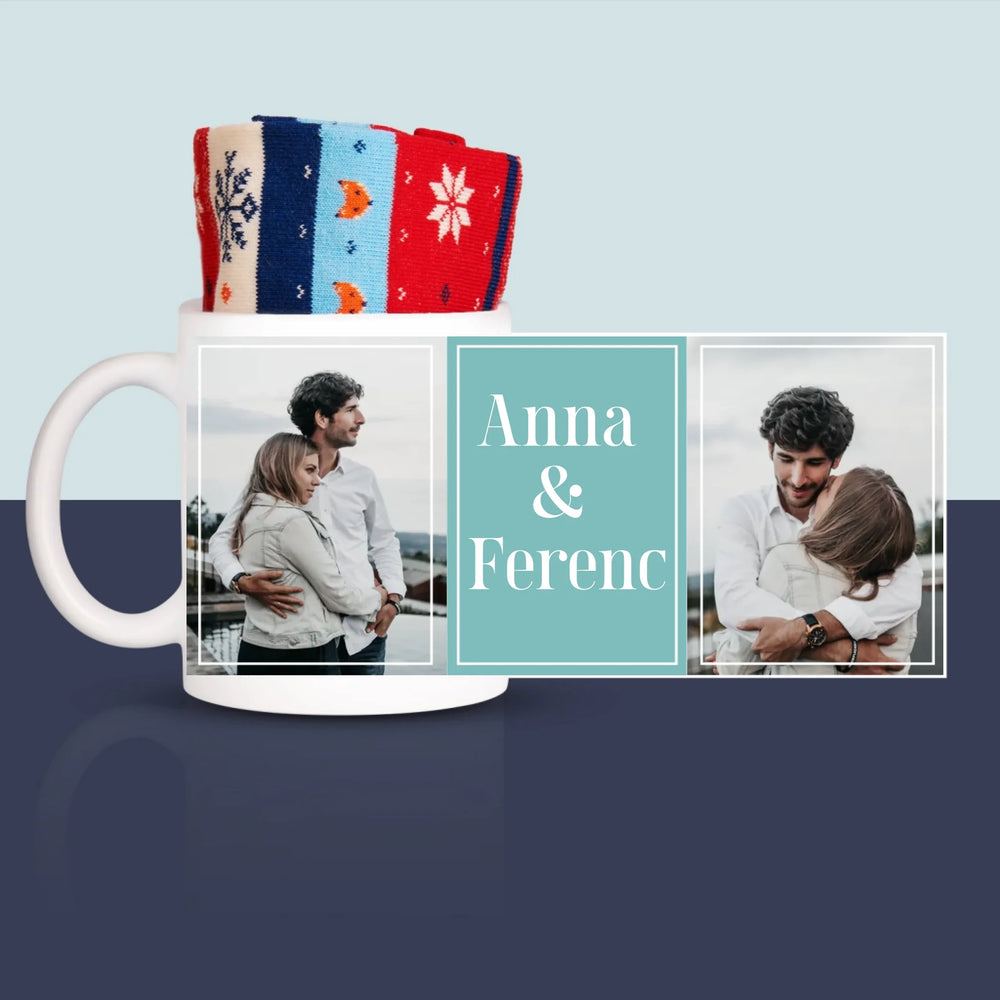Fotókollázs: Pár, Nevek - Téli zokni egy bögrében