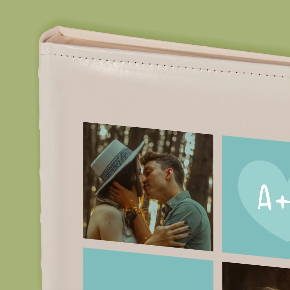 A belső oldalak krémszínűek, pergamenpapírral elválasztva, amely megóvja a fényképeket.