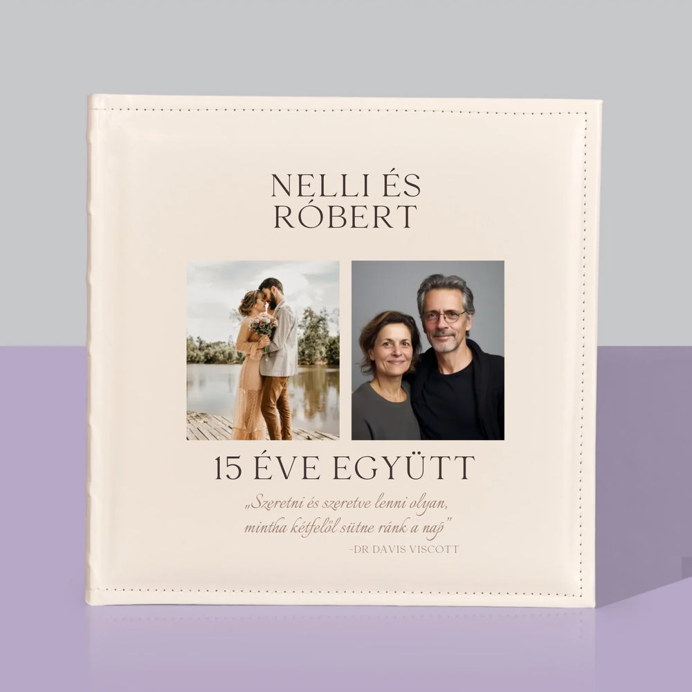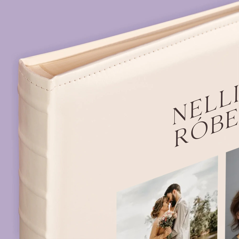 A belső oldalak krémszínűek, pergamenpapírral elválasztva, amely megóvja a fényképeket.