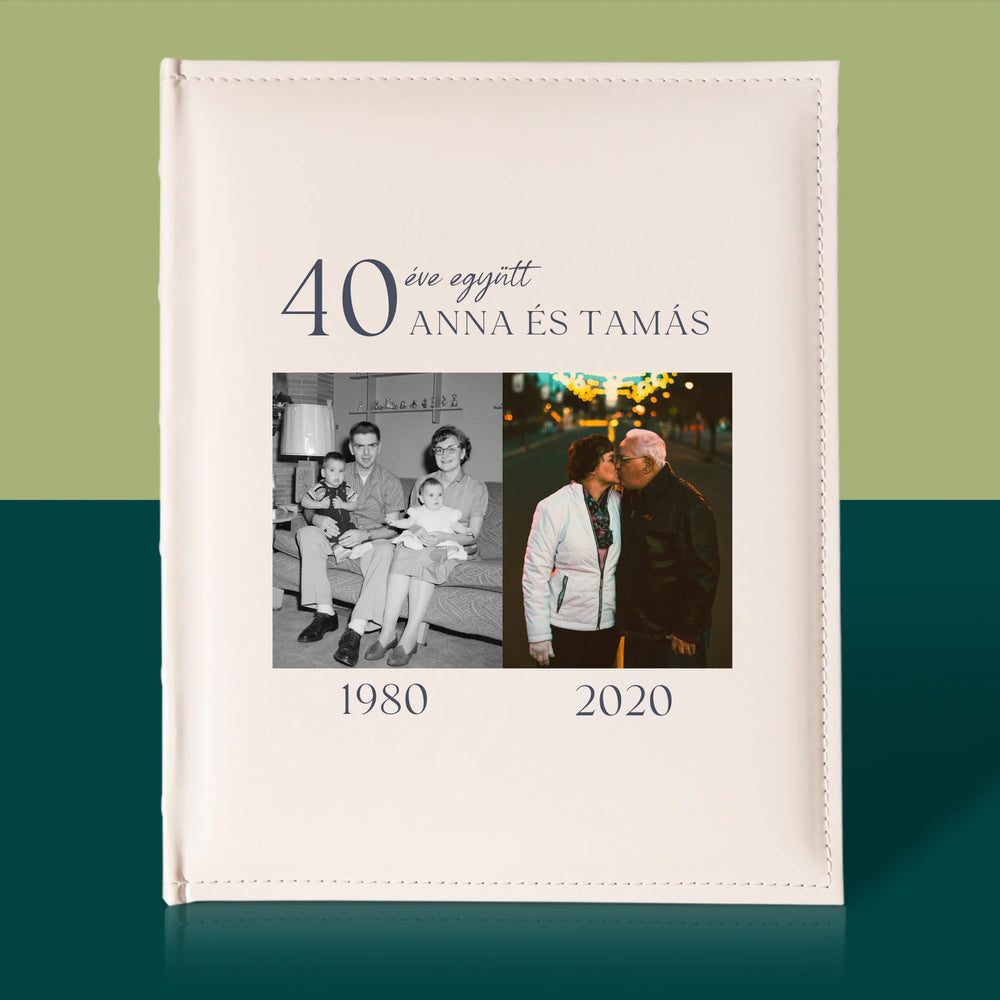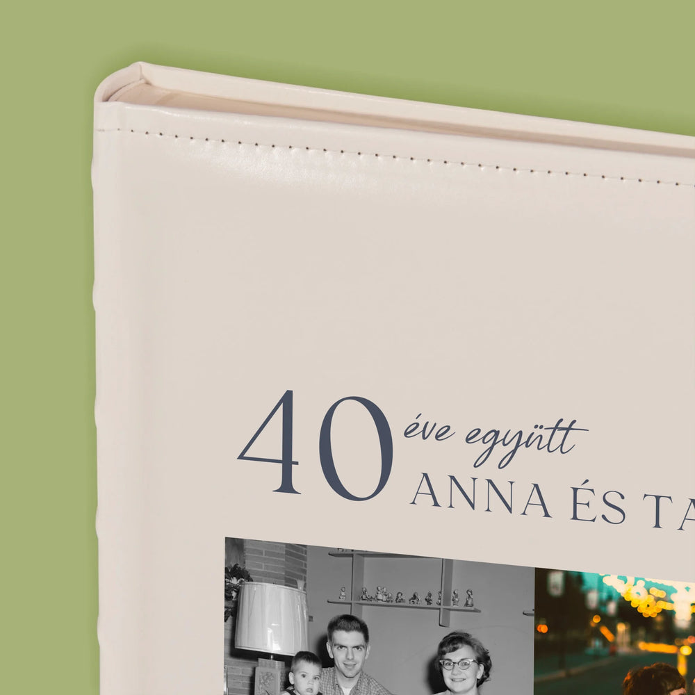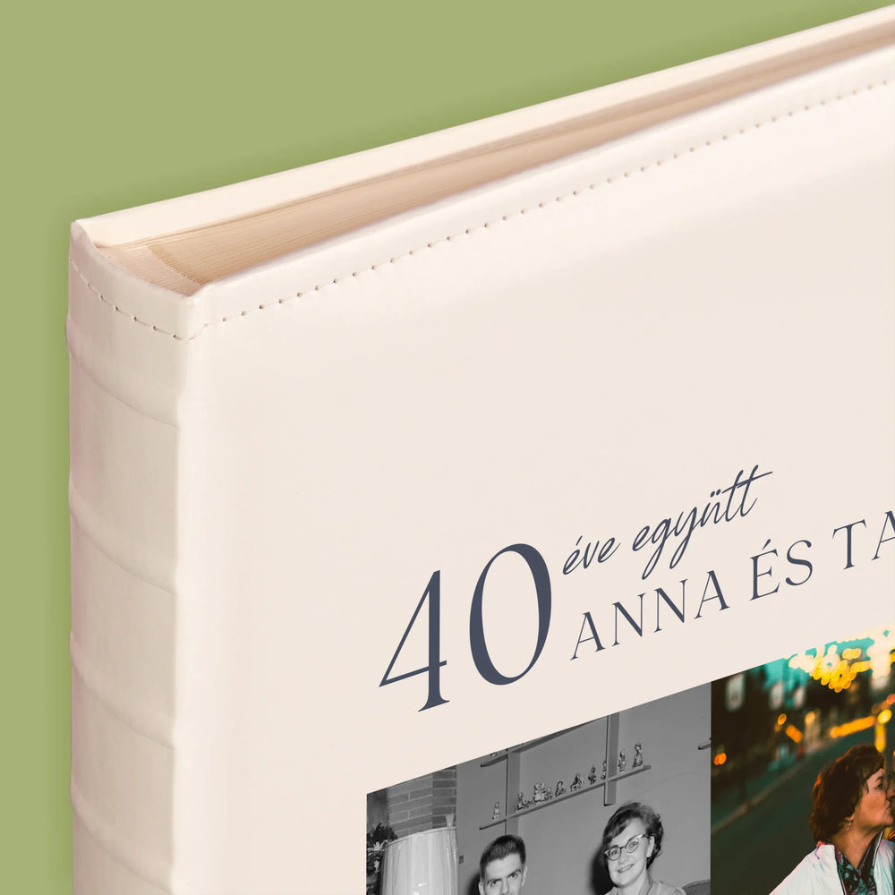 Hagyományos fényképalbum személyre szabott borítóval.
