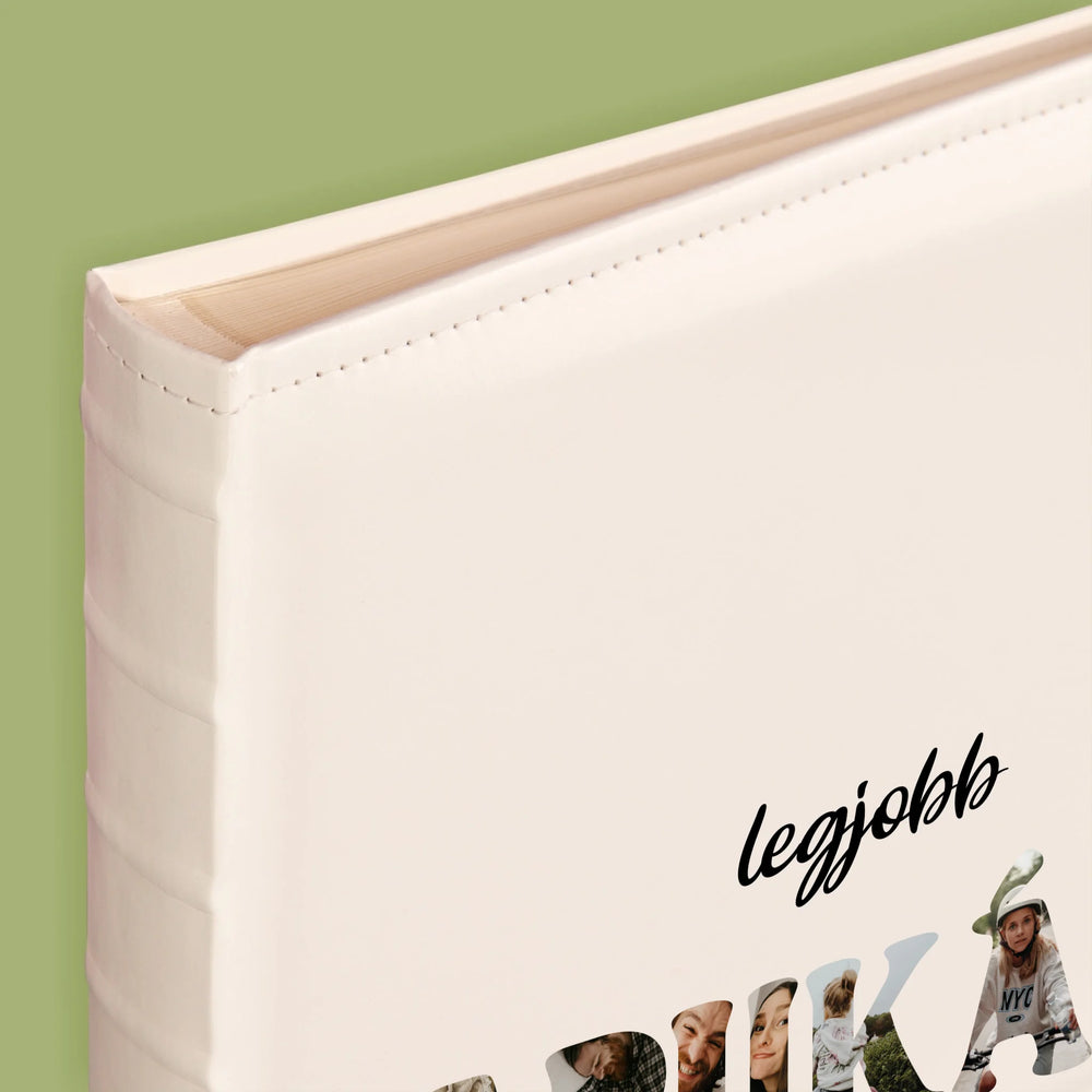 A belső oldalak krémszínűek, pergamenpapírral elválasztva, amely megóvja a fényképeket.