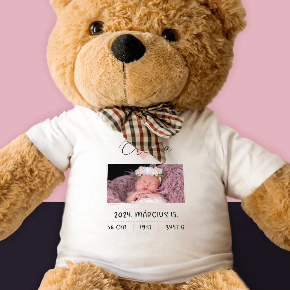 Születési Emléklap: Adatok, Szívecske, Lány - Plüss mackó 90 cm