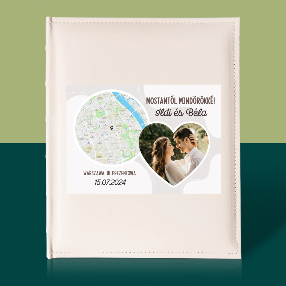 A belső oldalak krémszínűek, pergamenpapírral elválasztva, amely megóvja a fényképeket.