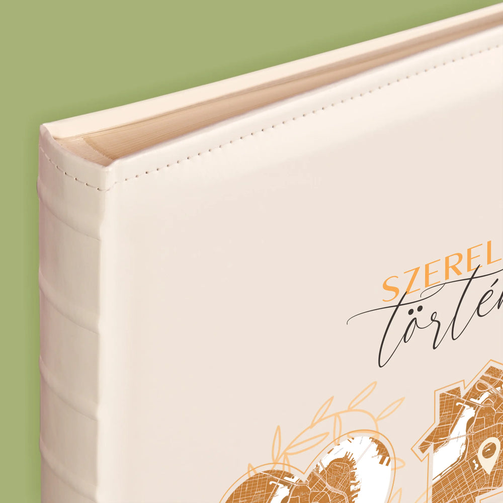 A belső oldalak krémszínűek, pergamenpapírral elválasztva, amely megóvja a fényképeket.