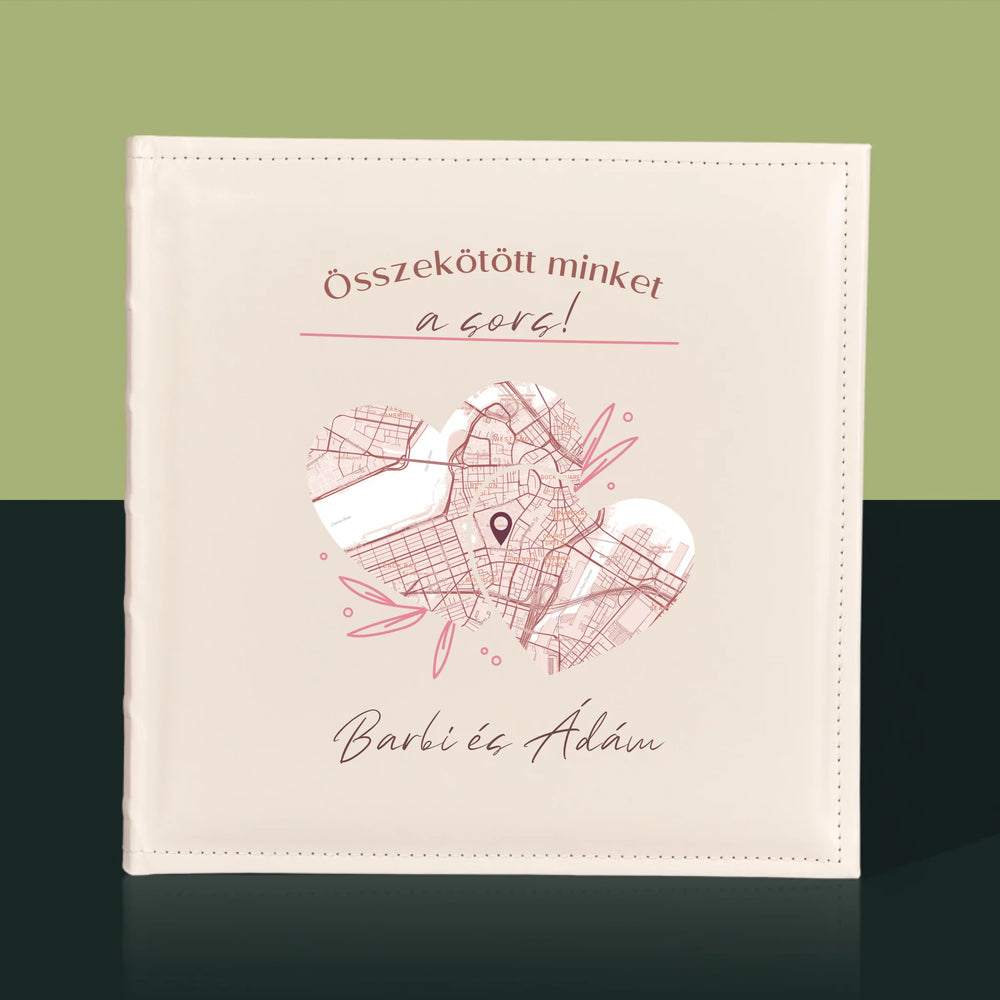 Hagyományos fényképalbum személyre szabott borítóval.