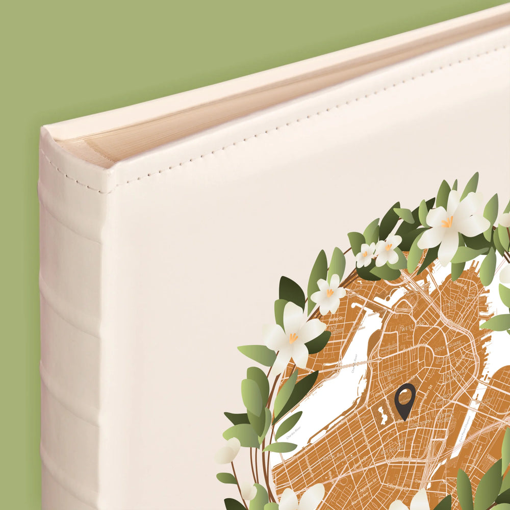 A belső oldalak krémszínűek, pergamenpapírral elválasztva, amely megóvja a fényképeket.