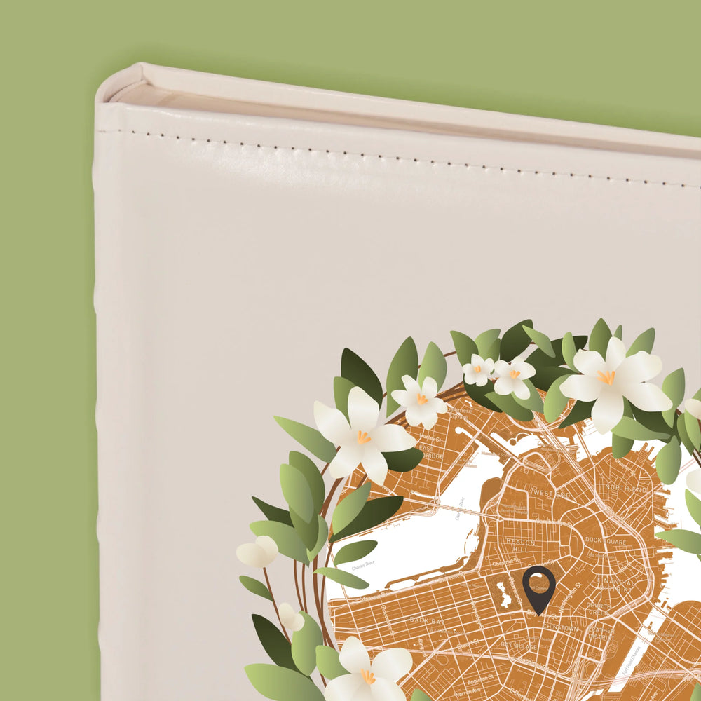 A borító fehér színű, enyhén fénylő a felülete, elegáns műbőrből készült.
