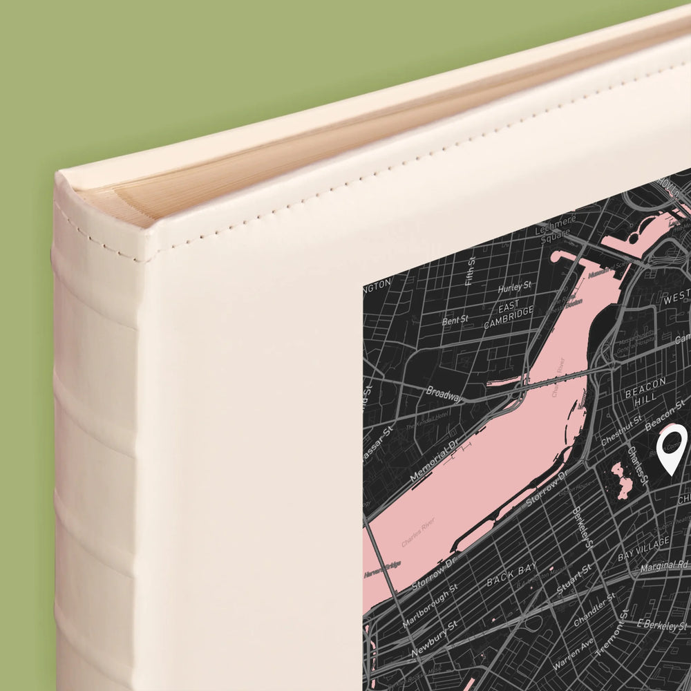 A belső oldalak krémszínűek, pergamenpapírral elválasztva, amely megóvja a fényképeket.